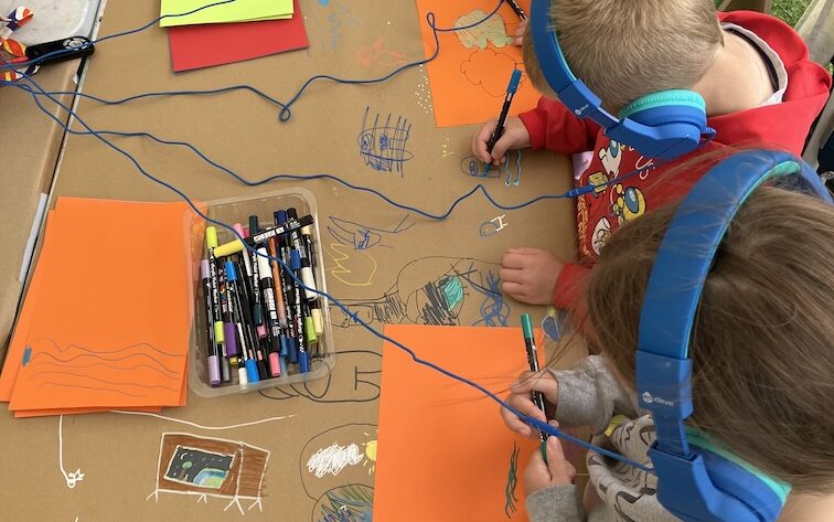 Sound and music workshops engaged school pupils and youth groups in learning field recording techniques and exploring their surroundings to capture keynotes and soundmarks, which are sounds that define the acoustic character of the Uists, from wind and waves to distinctive local details. These recordings became integral to the electronic textures and soundscape components of Tidelines, contributing layers of texture and atmosphere to the work.